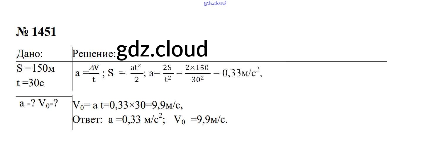 Ответ на задание 1451 Сборник задач Физика за 7, 8, 9 (седьмой, восьмой, девятый) класс Перышкин, Лонцова УМК 2016