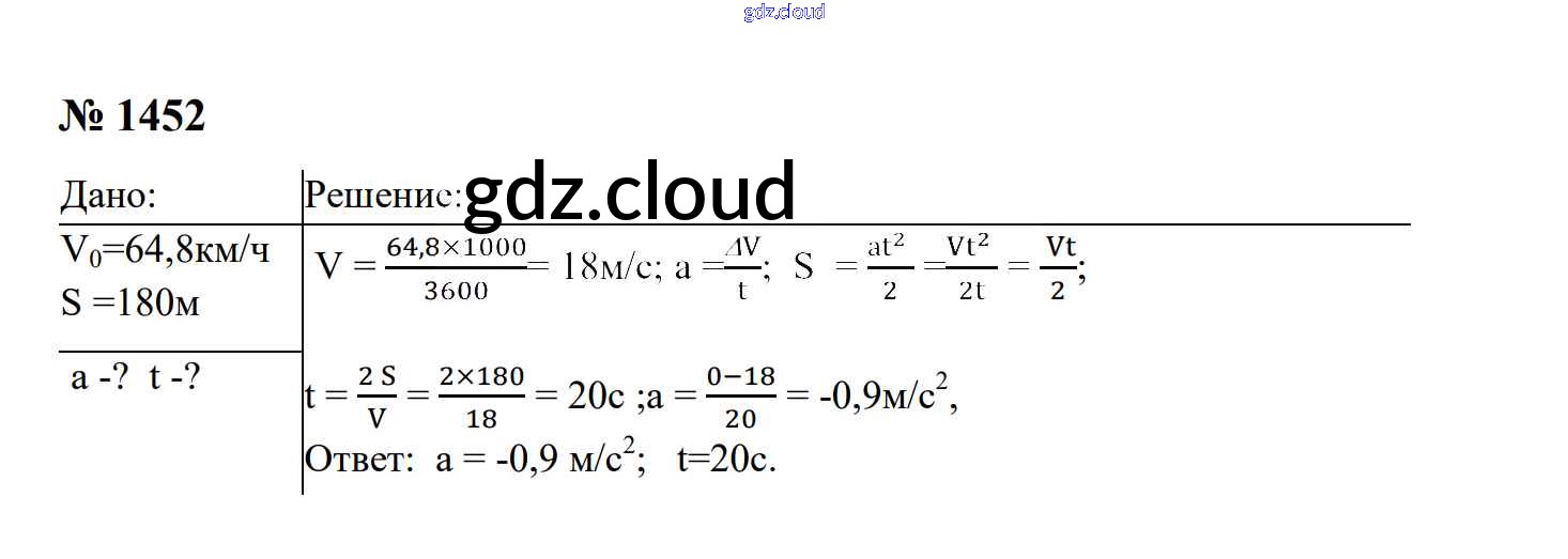 Ответ на задание 1452 Сборник задач Физика за 7, 8, 9 (седьмой, восьмой, девятый) класс Перышкин, Лонцова УМК 2016