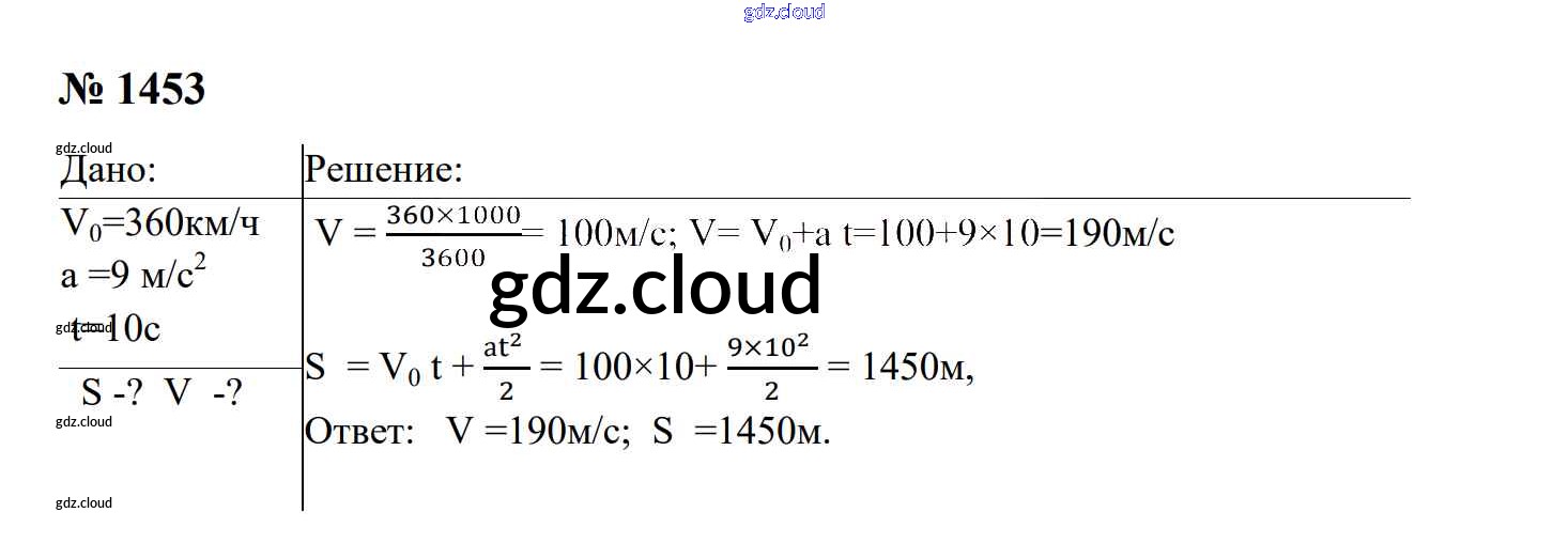 Ответ на задание 1453 Сборник задач Физика за 7, 8, 9 (седьмой, восьмой, девятый) класс Перышкин, Лонцова УМК 2016