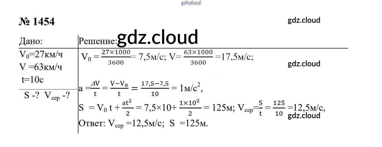 Ответ на задание 1454 Сборник задач Физика за 7, 8, 9 (седьмой, восьмой, девятый) класс Перышкин, Лонцова УМК 2016
