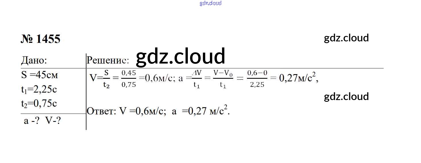 Ответ на задание 1455 Сборник задач Физика за 7, 8, 9 (седьмой, восьмой, девятый) класс Перышкин, Лонцова УМК 2016