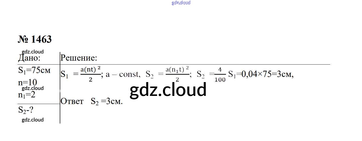 Ответ на задание 1463 Сборник задач Физика за 7, 8, 9 (седьмой, восьмой, девятый) класс Перышкин, Лонцова УМК 2016