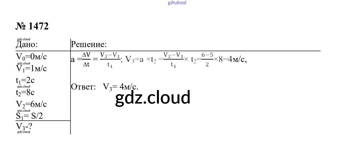 Ответ на задание 1472 Сборник задач Физика за 7, 8, 9 (седьмой, восьмой, девятый) класс Перышкин, Лонцова УМК 2016