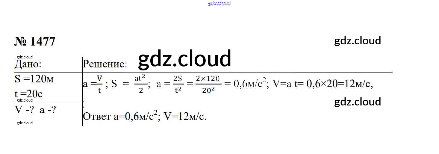 Ответ на задание 1477 Сборник задач Физика за 7, 8, 9 (седьмой, восьмой, девятый) класс Перышкин, Лонцова УМК 2016
