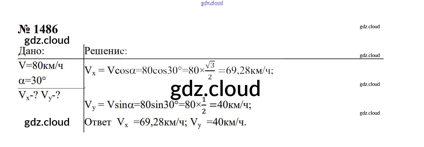 Ответ на задание 1486 Сборник задач Физика за 7, 8, 9 (седьмой, восьмой, девятый) класс Перышкин, Лонцова УМК 2016