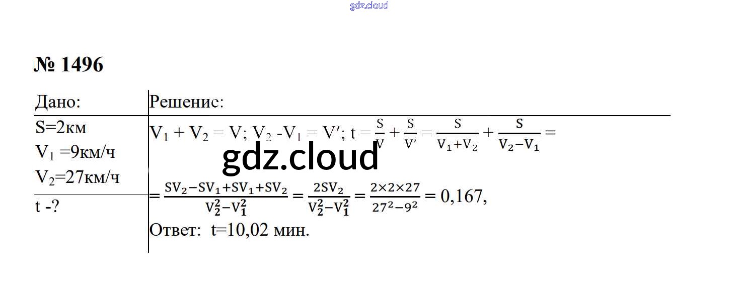 Ответ на задание 1496 Сборник задач Физика за 7, 8, 9 (седьмой, восьмой, девятый) класс Перышкин, Лонцова УМК 2016
