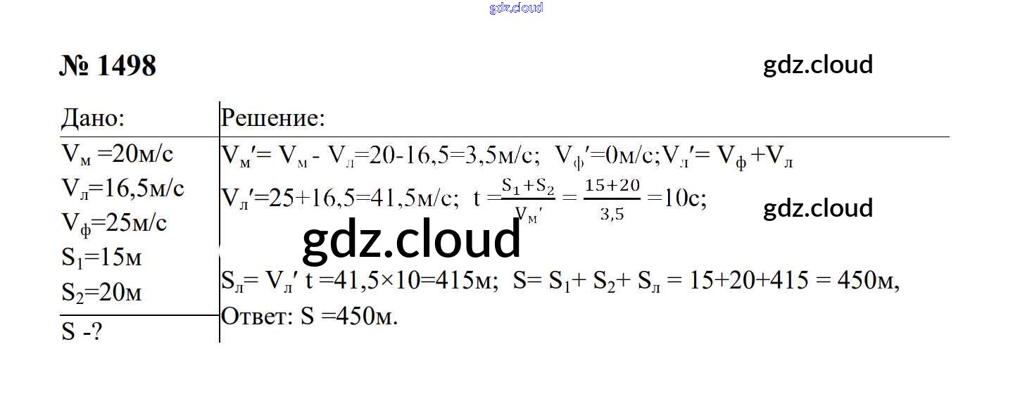Ответ на задание 1498 Сборник задач Физика за 7, 8, 9 (седьмой, восьмой, девятый) класс Перышкин, Лонцова УМК 2016