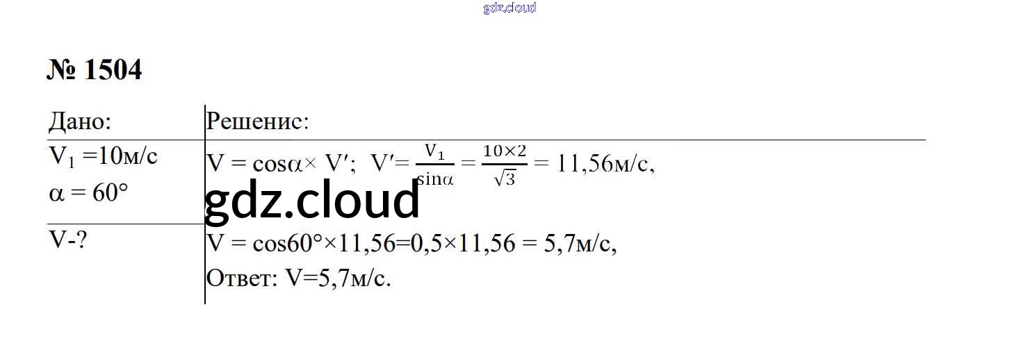 Ответ на задание 1504 Сборник задач Физика за 7, 8, 9 (седьмой, восьмой, девятый) класс Перышкин, Лонцова УМК 2016