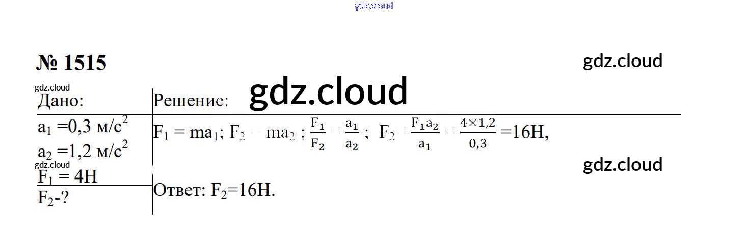 Ответ на задание 1515 Сборник задач Физика за 7, 8, 9 (седьмой, восьмой, девятый) класс Перышкин, Лонцова УМК 2016