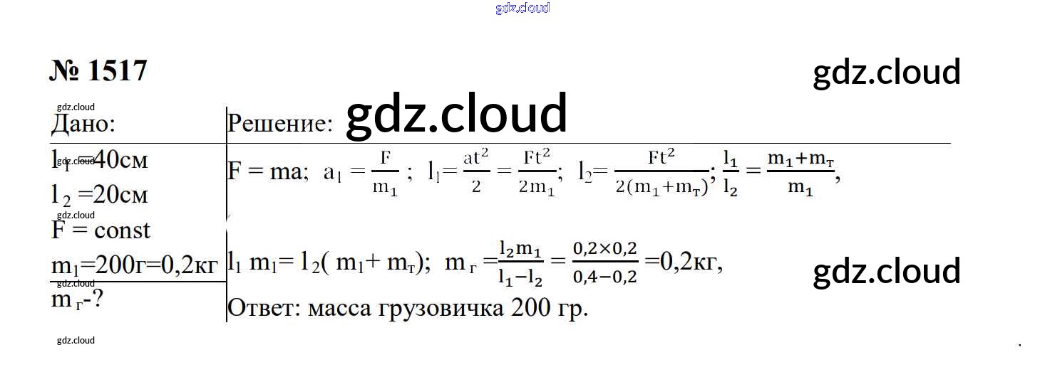 Ответ на задание 1517 Сборник задач Физика за 7, 8, 9 (седьмой, восьмой, девятый) класс Перышкин, Лонцова УМК 2016