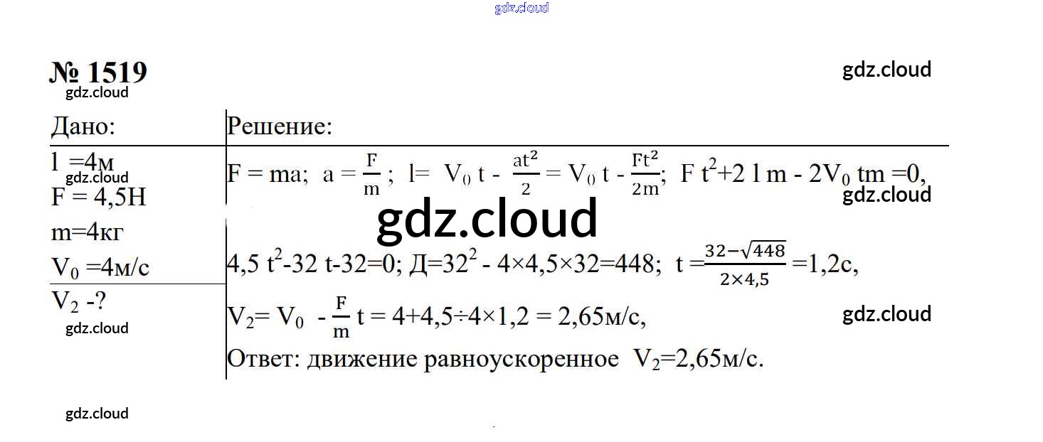 Ответ на задание 1519 Сборник задач Физика за 7, 8, 9 (седьмой, восьмой, девятый) класс Перышкин, Лонцова УМК 2016