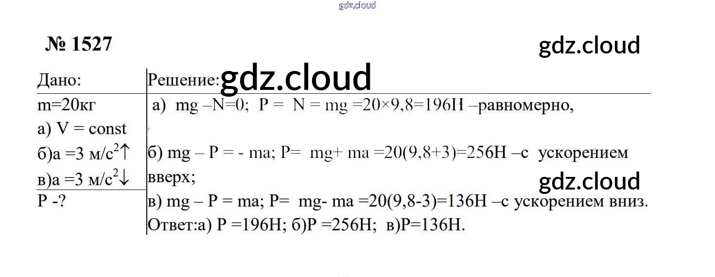 Ответ на задание 1527 Сборник задач Физика за 7, 8, 9 (седьмой, восьмой, девятый) класс Перышкин, Лонцова УМК 2016
