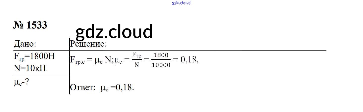 Ответ на задание 1533 Сборник задач Физика за 7, 8, 9 (седьмой, восьмой, девятый) класс Перышкин, Лонцова УМК 2016