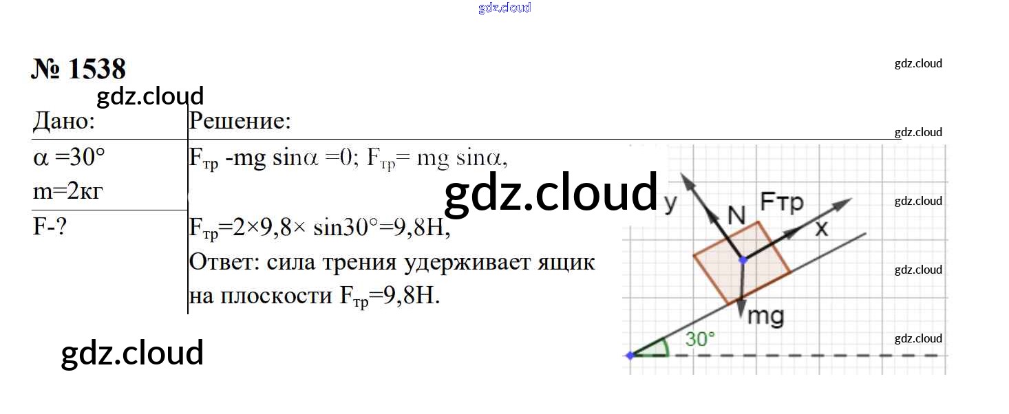 Ответ на задание 1538 Сборник задач Физика за 7, 8, 9 (седьмой, восьмой, девятый) класс Перышкин, Лонцова УМК 2016