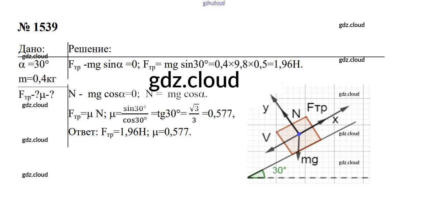 Ответ на задание 1539 Сборник задач Физика за 7, 8, 9 (седьмой, восьмой, девятый) класс Перышкин, Лонцова УМК 2016