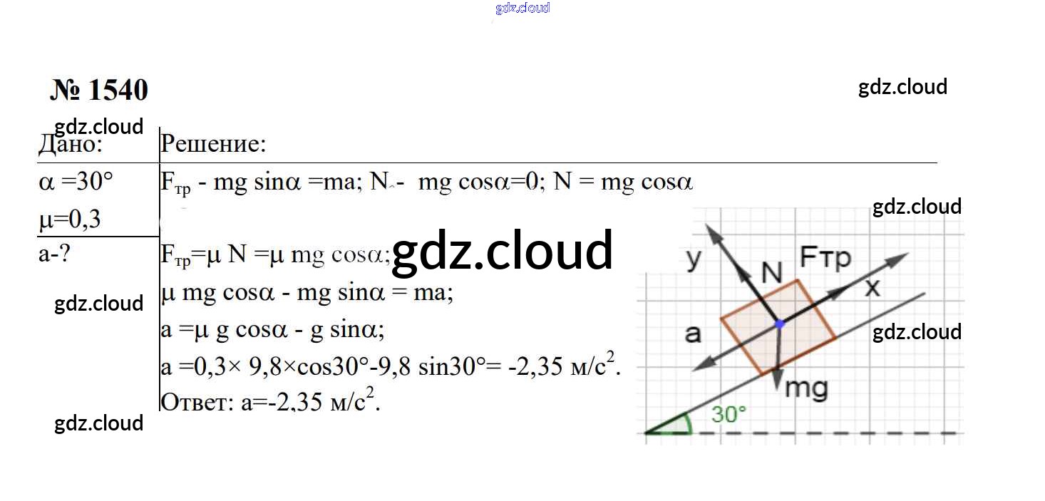 Ответ на задание 1540 Сборник задач Физика за 7, 8, 9 (седьмой, восьмой, девятый) класс Перышкин, Лонцова УМК 2016
