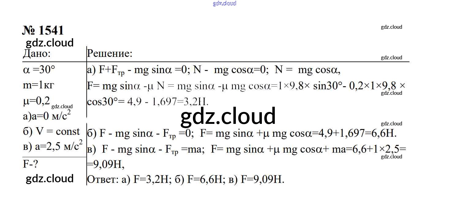 Ответ на задание 1541 Сборник задач Физика за 7, 8, 9 (седьмой, восьмой, девятый) класс Перышкин, Лонцова УМК 2016