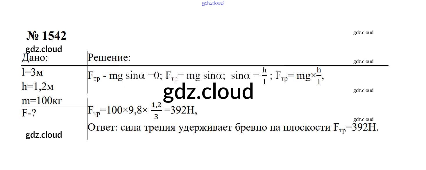 Ответ на задание 1542 Сборник задач Физика за 7, 8, 9 (седьмой, восьмой, девятый) класс Перышкин, Лонцова УМК 2016