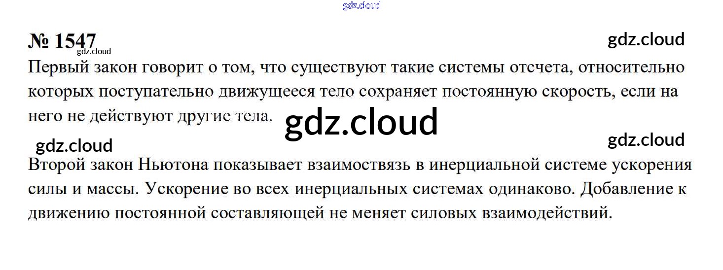 Ответ на задание 1547 Сборник задач Физика за 7, 8, 9 (седьмой, восьмой, девятый) класс Перышкин, Лонцова УМК 2016