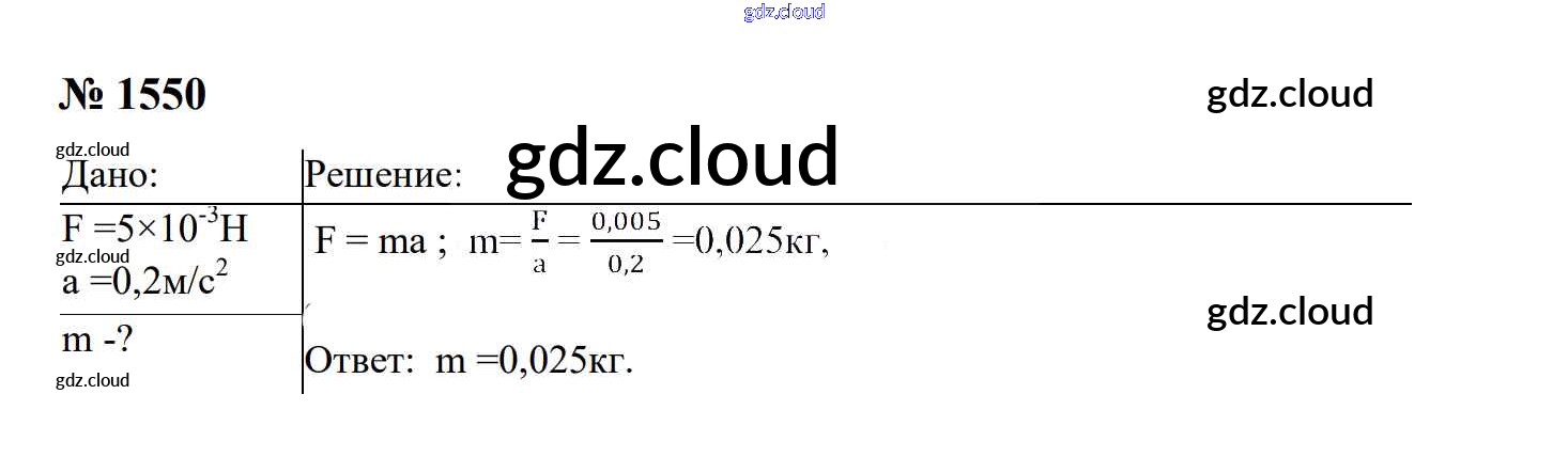 Ответ на задание 1550 Сборник задач Физика за 7, 8, 9 (седьмой, восьмой, девятый) класс Перышкин, Лонцова УМК 2016