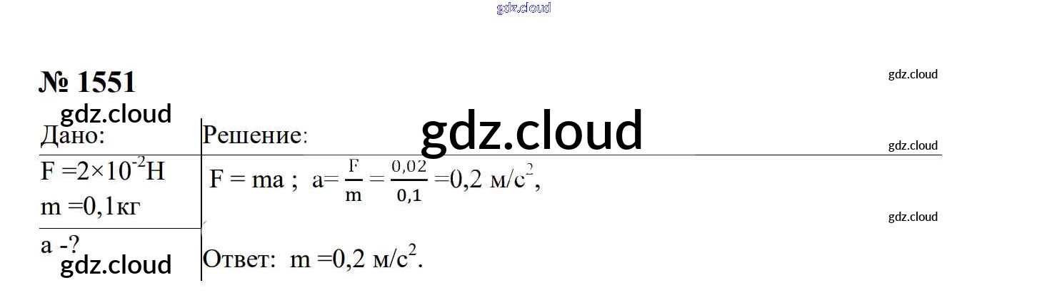 Ответ на задание 1551 Сборник задач Физика за 7, 8, 9 (седьмой, восьмой, девятый) класс Перышкин, Лонцова УМК 2016