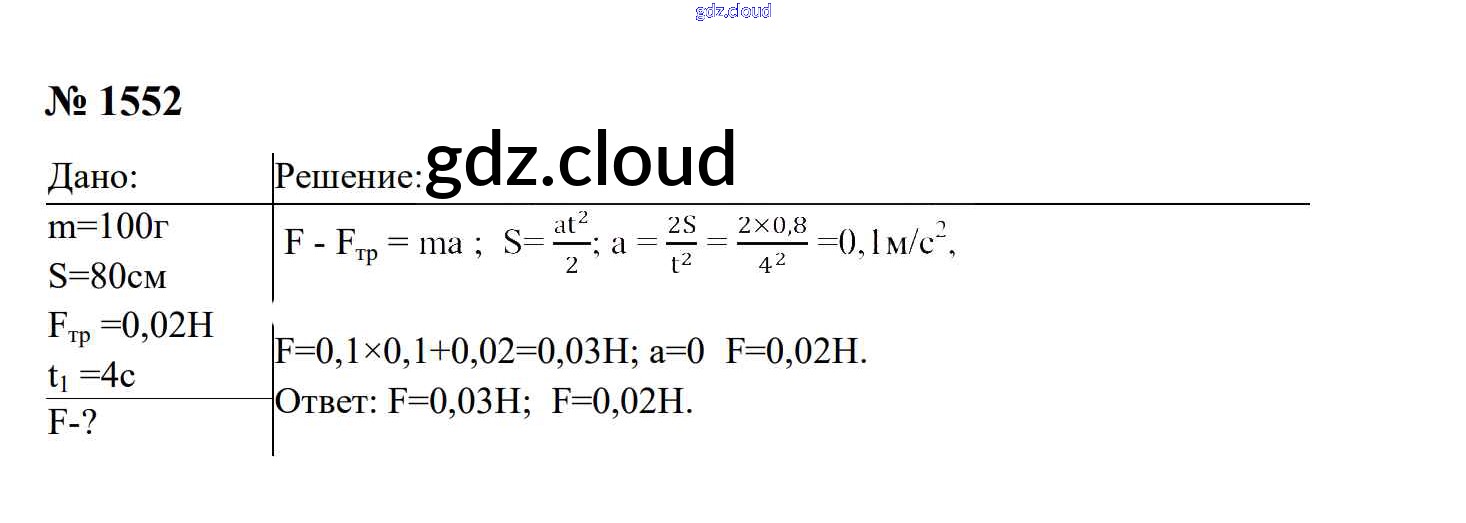Ответ на задание 1552 Сборник задач Физика за 7, 8, 9 (седьмой, восьмой, девятый) класс Перышкин, Лонцова УМК 2016