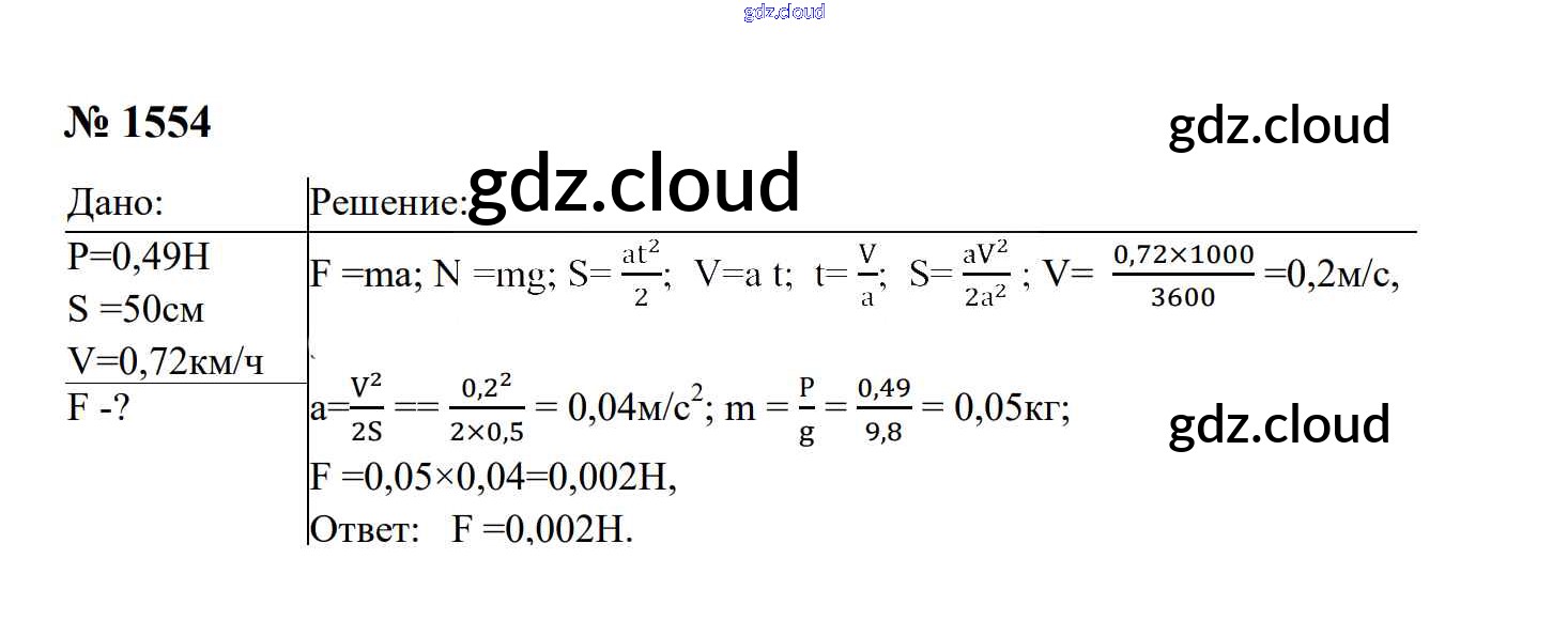 Ответ на задание 1554 Сборник задач Физика за 7, 8, 9 (седьмой, восьмой, девятый) класс Перышкин, Лонцова УМК 2016