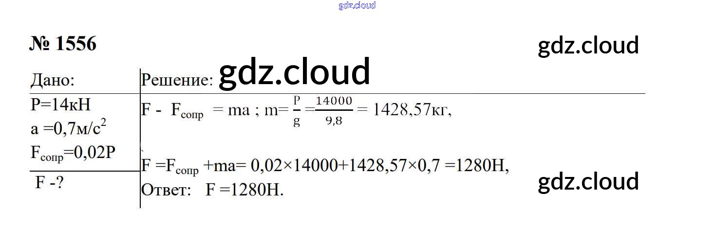 Ответ на задание 1556 Сборник задач Физика за 7, 8, 9 (седьмой, восьмой, девятый) класс Перышкин, Лонцова УМК 2016