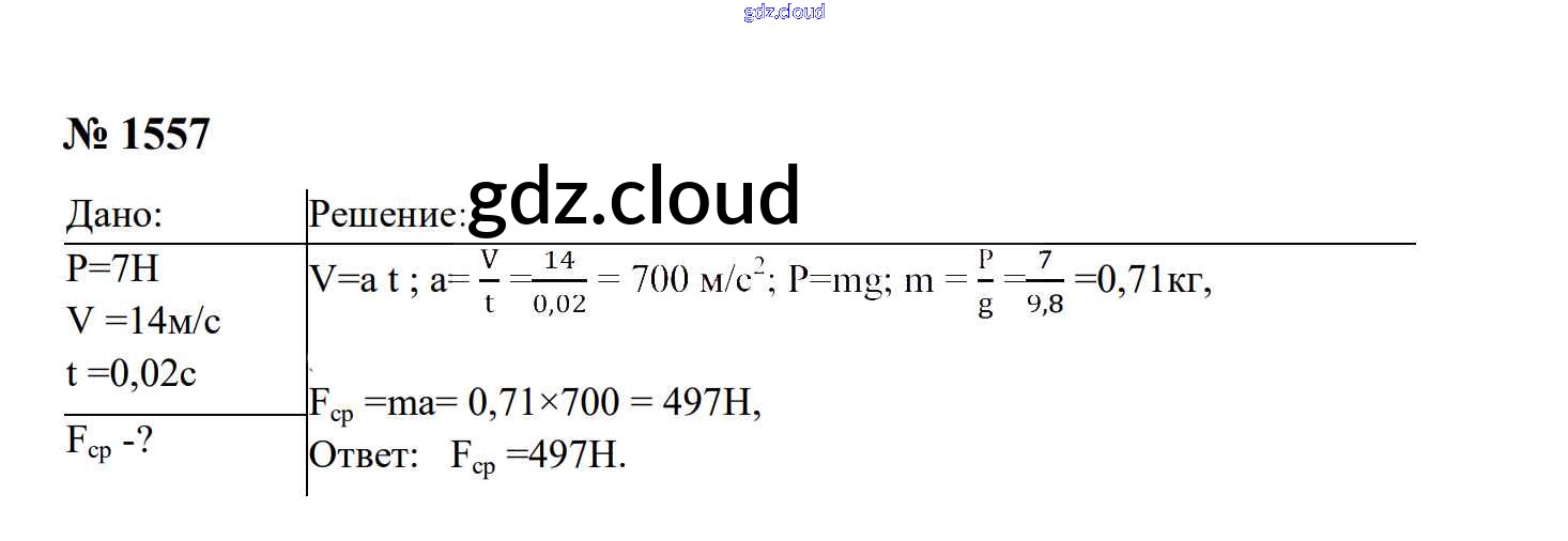 Ответ на задание 1557 Сборник задач Физика за 7, 8, 9 (седьмой, восьмой, девятый) класс Перышкин, Лонцова УМК 2016