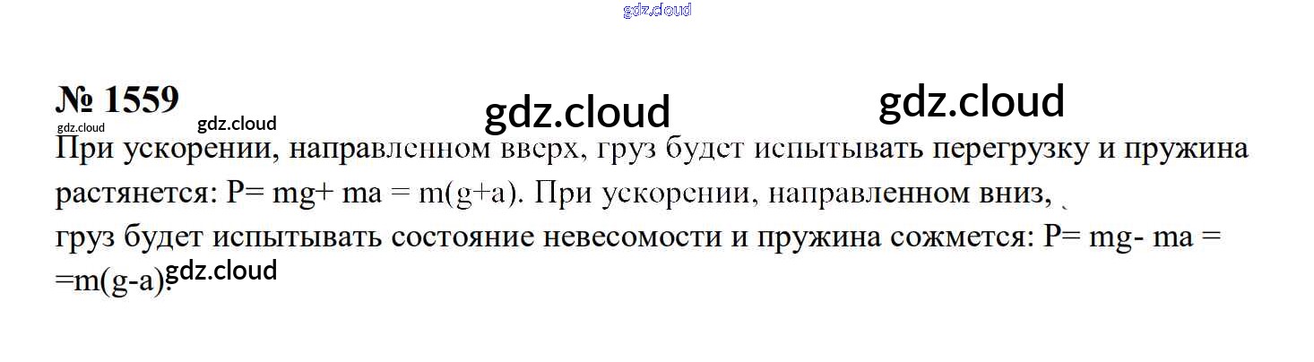 Ответ на задание 1559 Сборник задач Физика за 7, 8, 9 (седьмой, восьмой, девятый) класс Перышкин, Лонцова УМК 2016