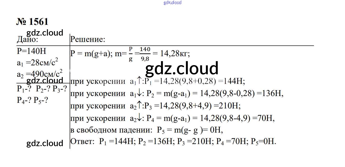 Ответ на задание 1561 Сборник задач Физика за 7, 8, 9 (седьмой, восьмой, девятый) класс Перышкин, Лонцова УМК 2016