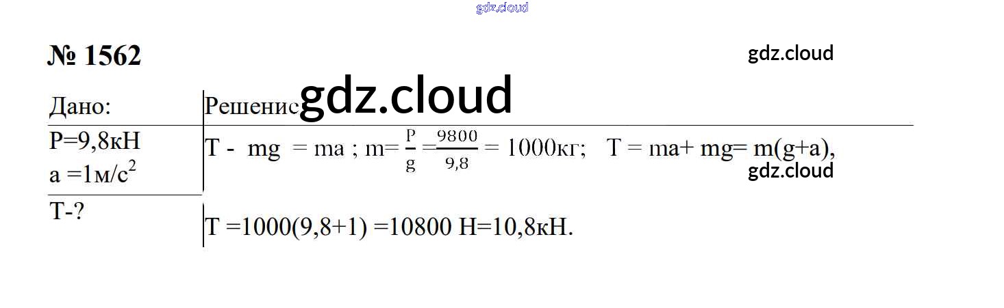 Ответ на задание 1562 Сборник задач Физика за 7, 8, 9 (седьмой, восьмой, девятый) класс Перышкин, Лонцова УМК 2016