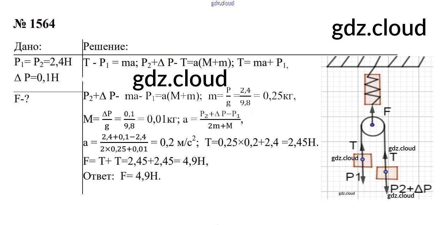 Ответ на задание 1564 Сборник задач Физика за 7, 8, 9 (седьмой, восьмой, девятый) класс Перышкин, Лонцова УМК 2016