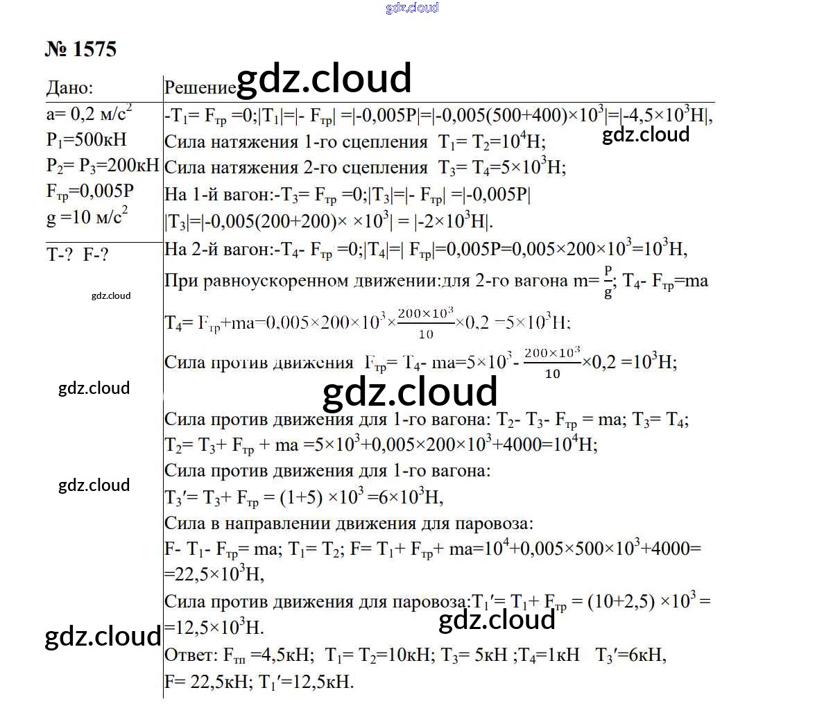 Ответ на задание 1575 Сборник задач Физика за 7, 8, 9 (седьмой, восьмой, девятый) класс Перышкин, Лонцова УМК 2016