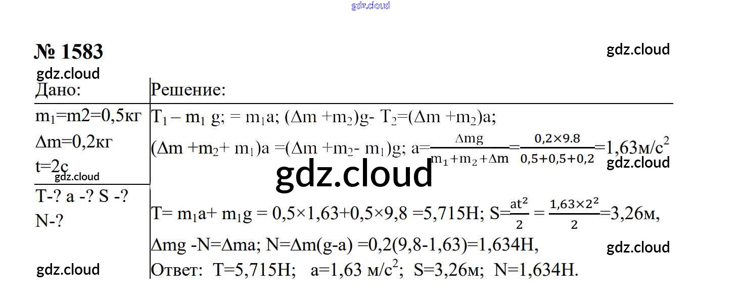 Ответ на задание 1583 Сборник задач Физика за 7, 8, 9 (седьмой, восьмой, девятый) класс Перышкин, Лонцова УМК 2016