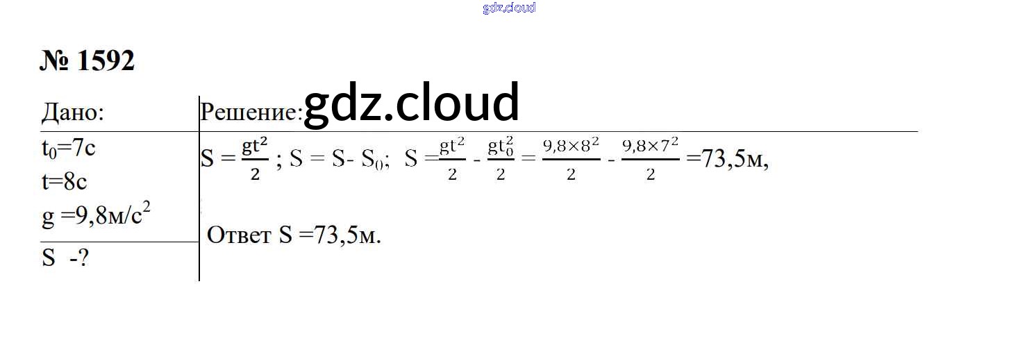 Ответ на задание 1592 Сборник задач Физика за 7, 8, 9 (седьмой, восьмой, девятый) класс Перышкин, Лонцова УМК 2016