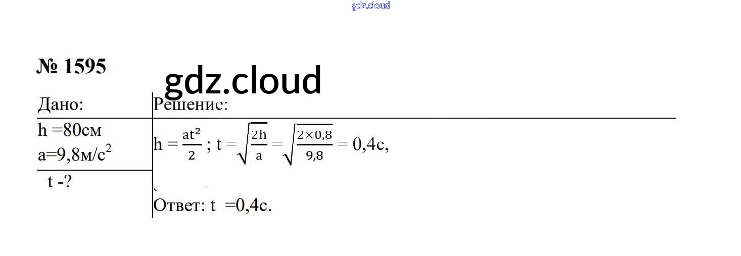Ответ на задание 1595 Сборник задач Физика за 7, 8, 9 (седьмой, восьмой, девятый) класс Перышкин, Лонцова УМК 2016