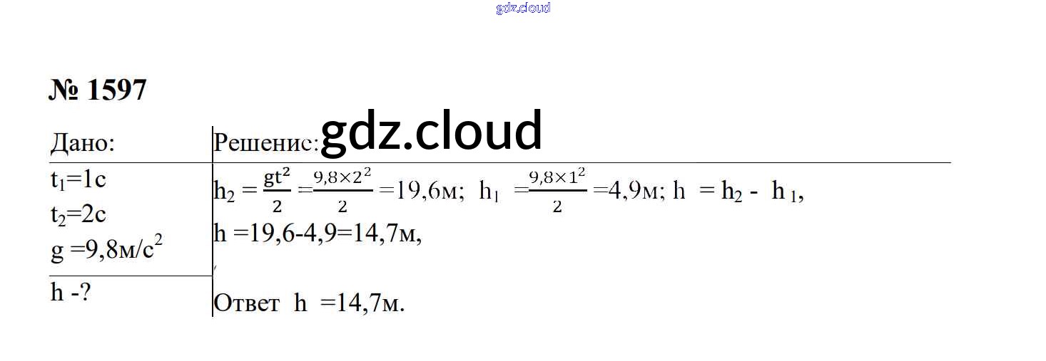 Ответ на задание 1597 Сборник задач Физика за 7, 8, 9 (седьмой, восьмой, девятый) класс Перышкин, Лонцова УМК 2016