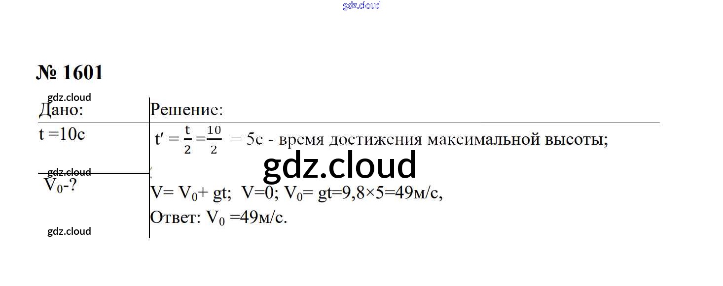 Ответ на задание 1601 Сборник задач Физика за 7, 8, 9 (седьмой, восьмой, девятый) класс Перышкин, Лонцова УМК 2016
