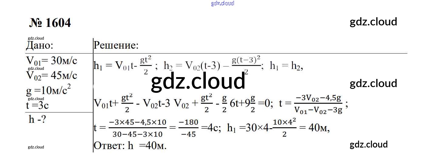 Ответ на задание 1604 Сборник задач Физика за 7, 8, 9 (седьмой, восьмой, девятый) класс Перышкин, Лонцова УМК 2016