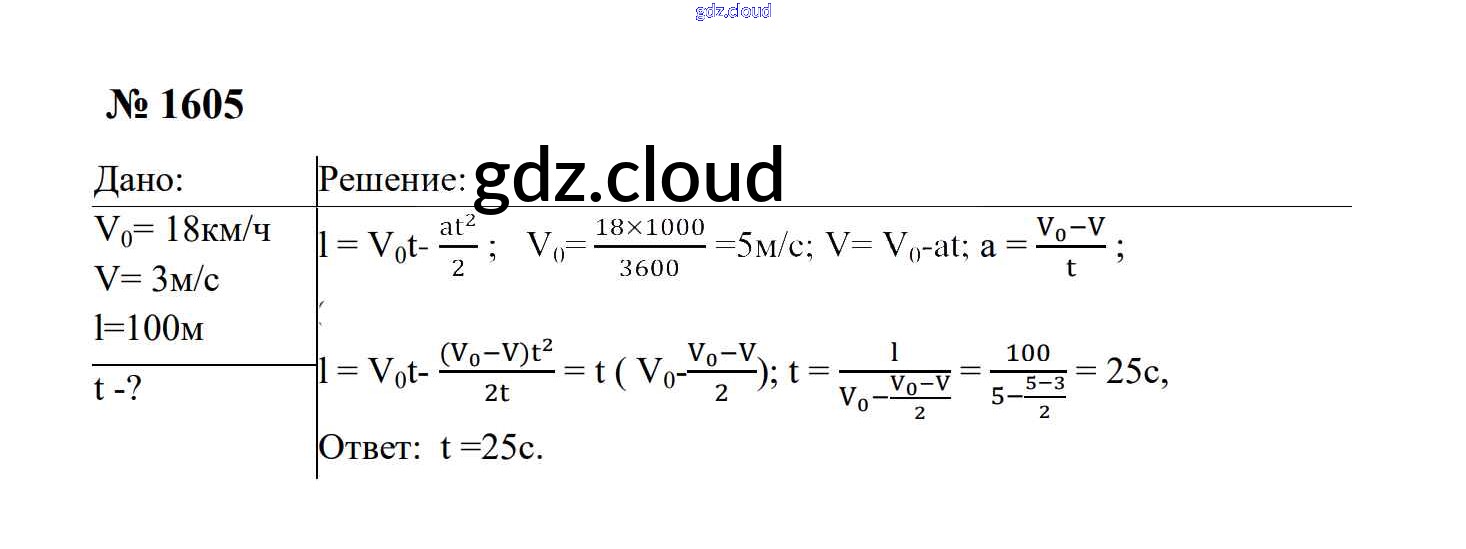 Ответ на задание 1605 Сборник задач Физика за 7, 8, 9 (седьмой, восьмой, девятый) класс Перышкин, Лонцова УМК 2016