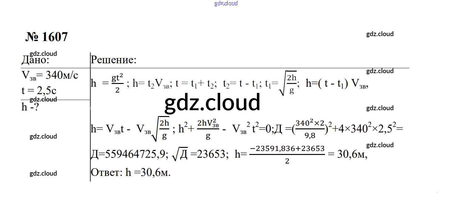 Ответ на задание 1607 Сборник задач Физика за 7, 8, 9 (седьмой, восьмой, девятый) класс Перышкин, Лонцова УМК 2016