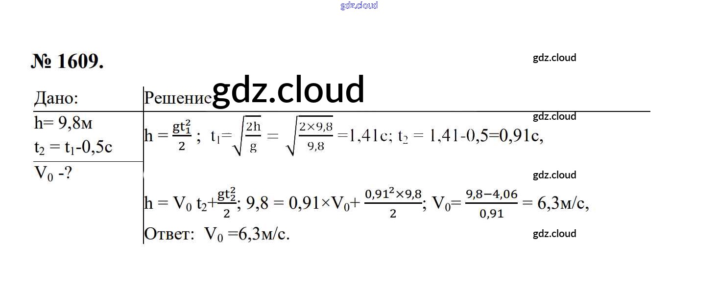 Ответ на задание 1609 Сборник задач Физика за 7, 8, 9 (седьмой, восьмой, девятый) класс Перышкин, Лонцова УМК 2016