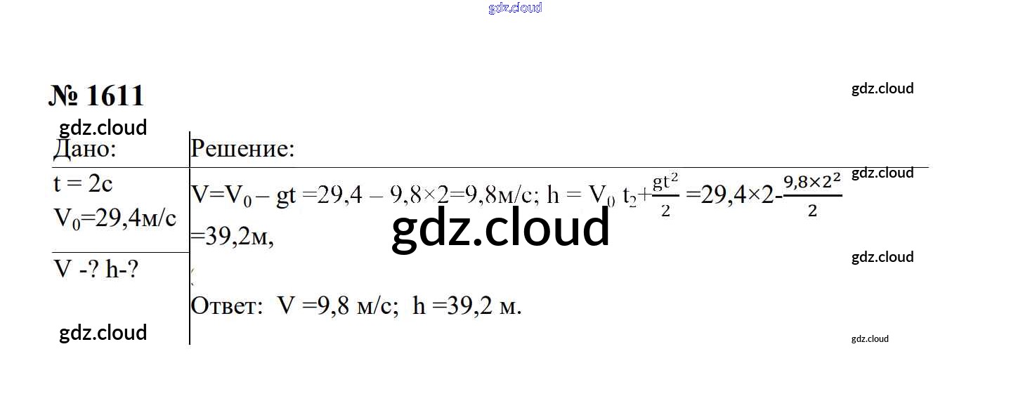 Ответ на задание 1611 Сборник задач Физика за 7, 8, 9 (седьмой, восьмой, девятый) класс Перышкин, Лонцова УМК 2016