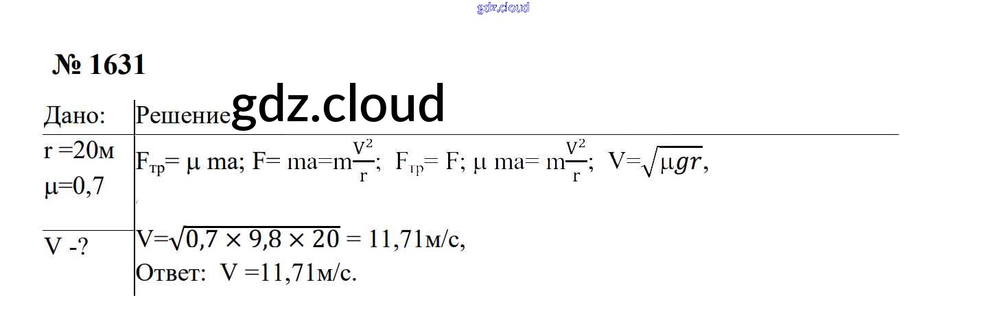 Ответ на задание 1631 Сборник задач Физика за 7, 8, 9 (седьмой, восьмой, девятый) класс Перышкин, Лонцова УМК 2016