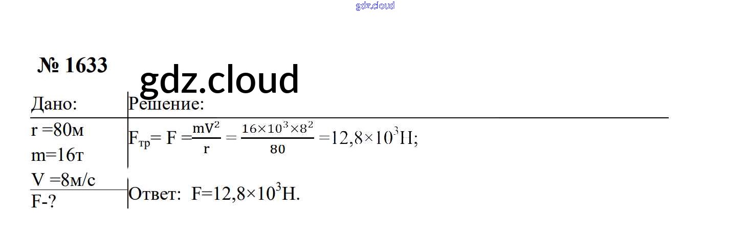 Ответ на задание 1633 Сборник задач Физика за 7, 8, 9 (седьмой, восьмой, девятый) класс Перышкин, Лонцова УМК 2016