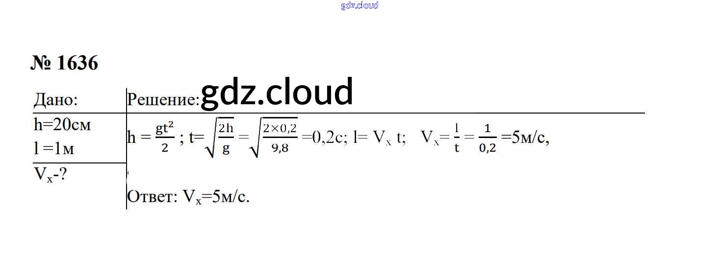 Ответ на задание 1636 Сборник задач Физика за 7, 8, 9 (седьмой, восьмой, девятый) класс Перышкин, Лонцова УМК 2016