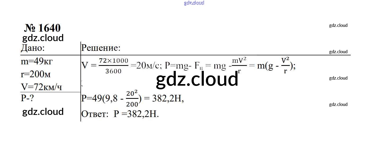 Ответ на задание 1640 Сборник задач Физика за 7, 8, 9 (седьмой, восьмой, девятый) класс Перышкин, Лонцова УМК 2016