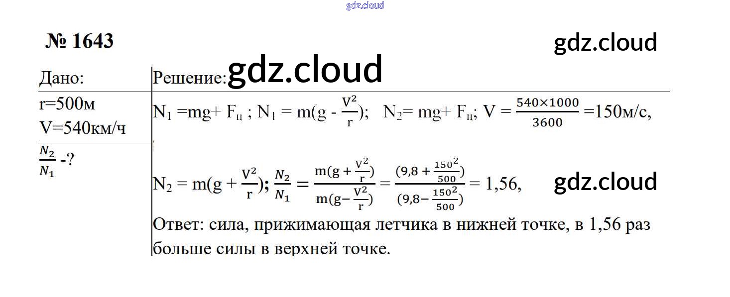 Ответ на задание 1643 Сборник задач Физика за 7, 8, 9 (седьмой, восьмой, девятый) класс Перышкин, Лонцова УМК 2016