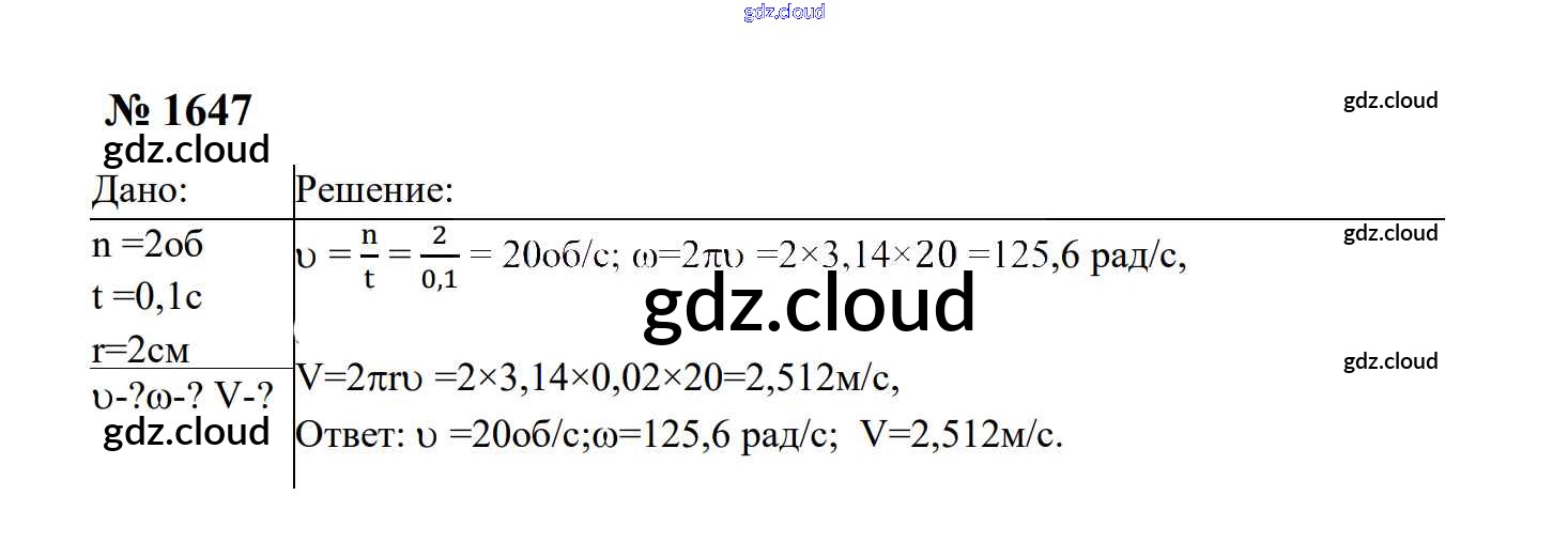 Ответ на задание 1647 Сборник задач Физика за 7, 8, 9 (седьмой, восьмой, девятый) класс Перышкин, Лонцова УМК 2016